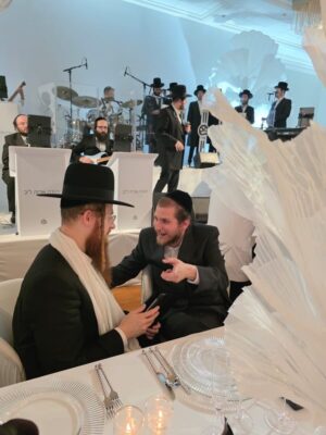 אפיריון פינת בורו פארק: איש הנדל"ן הירושלמי שלמה ליפשיץ, צפה בשיחה ידידותית עם הזמר אברהם מרדכי שוורץ בשמחת בר מצווה יוקרתית בארה"ב
