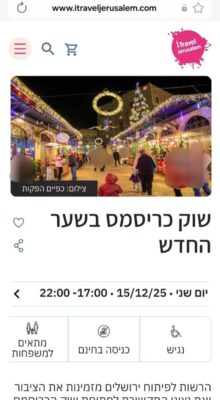 בעוד שהעירייה ביטלה מימון לזמרים חסידיים בגלל ההפרדה בין גברים לנשים, היא מפרסמת אירועים לחנוכה ביניהם את שוק האוכל שמוצג ברשתות כפסטיבל לציון חגי הנצרות.