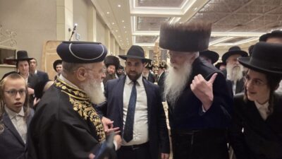 את השר לשעבר מש"ס חיים ביטון ראינו גם כן בחתונת בנו של יו"ר ועד הישיבות – למרות העדר התקציבים השניים נראו מחויכים