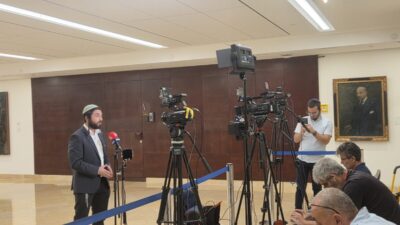 בצומת משרד החוץ תיעדנו את אליה אביב כתב ערוץ 14 בירושלים וביהודה ושומרון מפרשן את אירועי הכנסת הסמוכה באותו יום