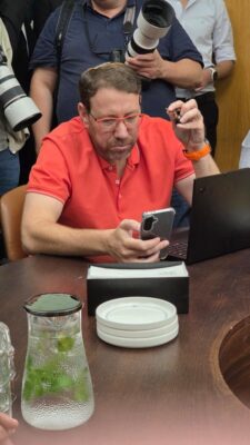 ואם כבר פלאפונים ויועצים: היועץ האסטרטגי שניאור רוזן נצפה מדבר שיחה רצינית בפתח משרדו שבהר חוצבים. מערכת חרדים ירושלים מזמינה אותו לקפה